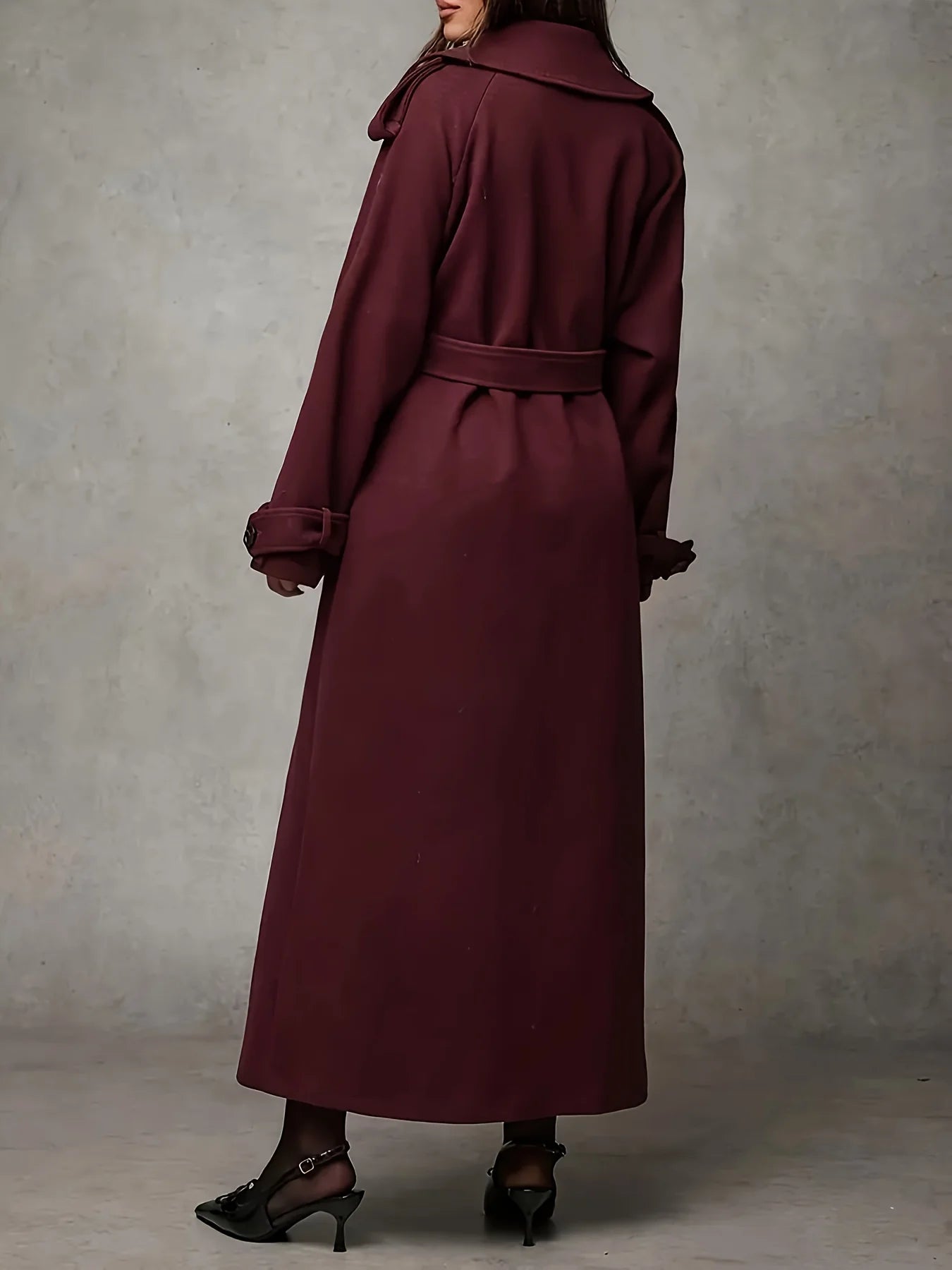 Autumn and winter women's double breasted turtleneck wool trench coat with belt decoration, suitable for daily commuting